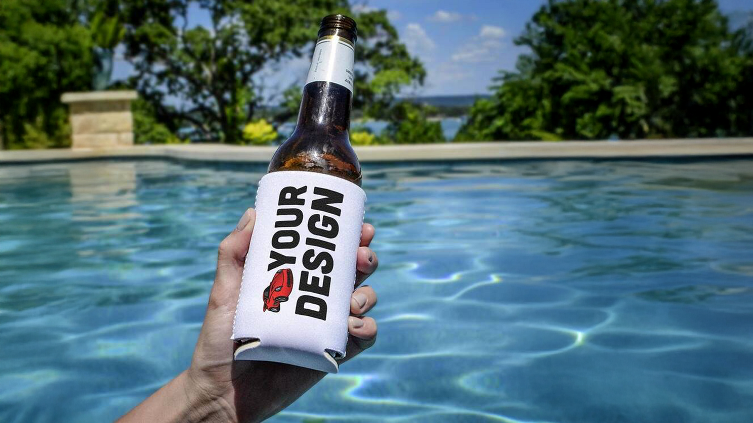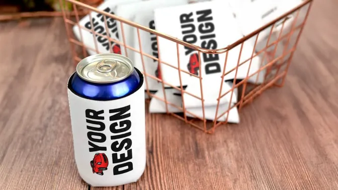 These custom drink koozies are great for BBQs, outdoor events, festivals, and parties! They feature reinforced seam stitching for a snug water bottle, can, or glass bottle fit. Over 30 colors to choose from!